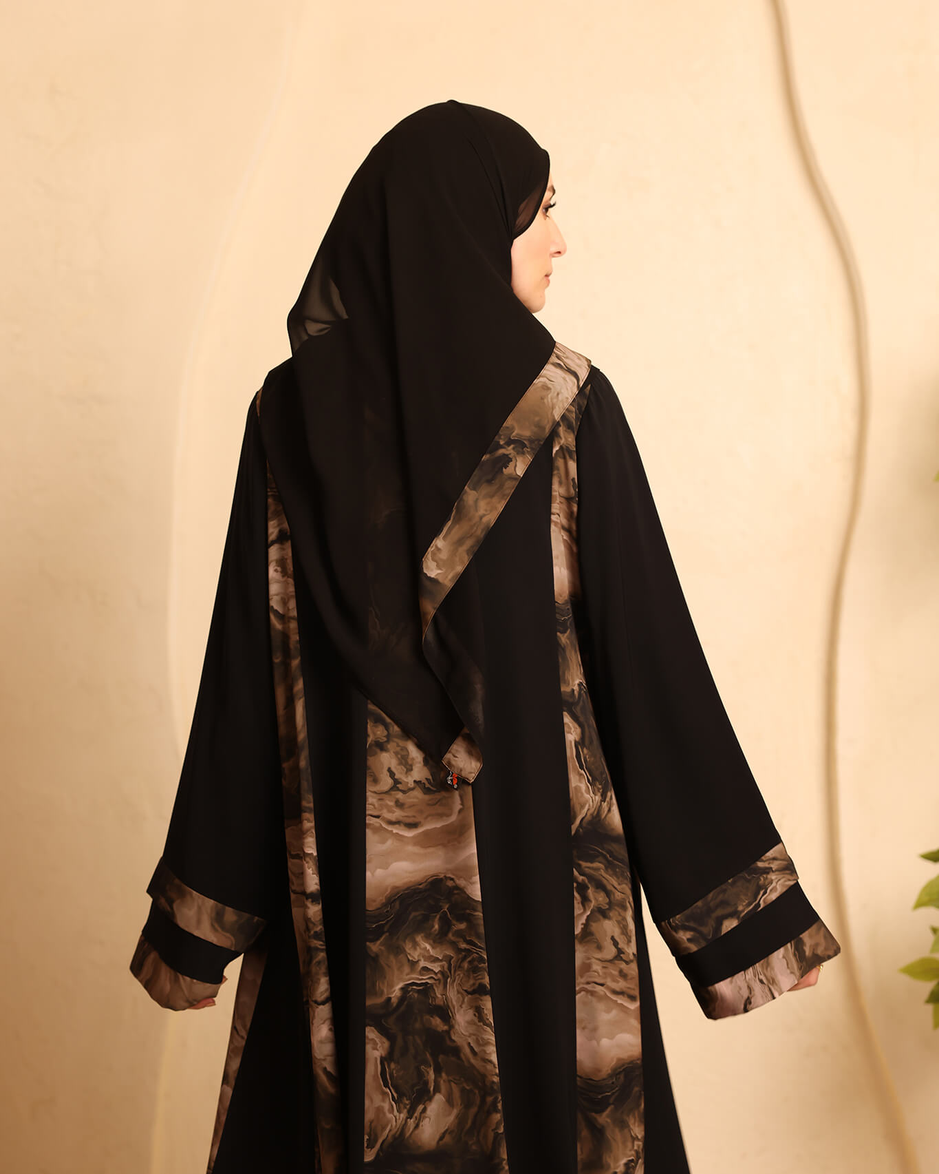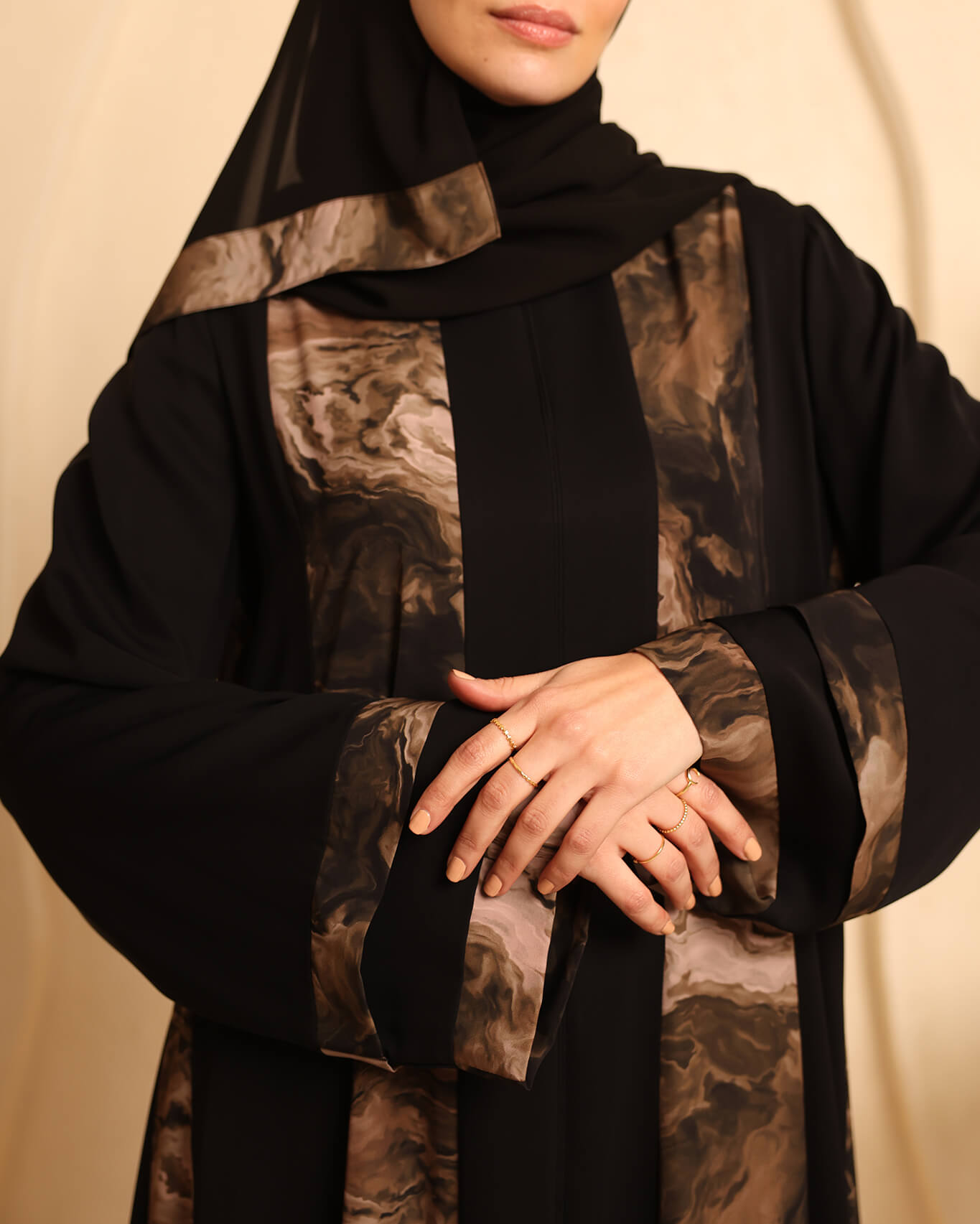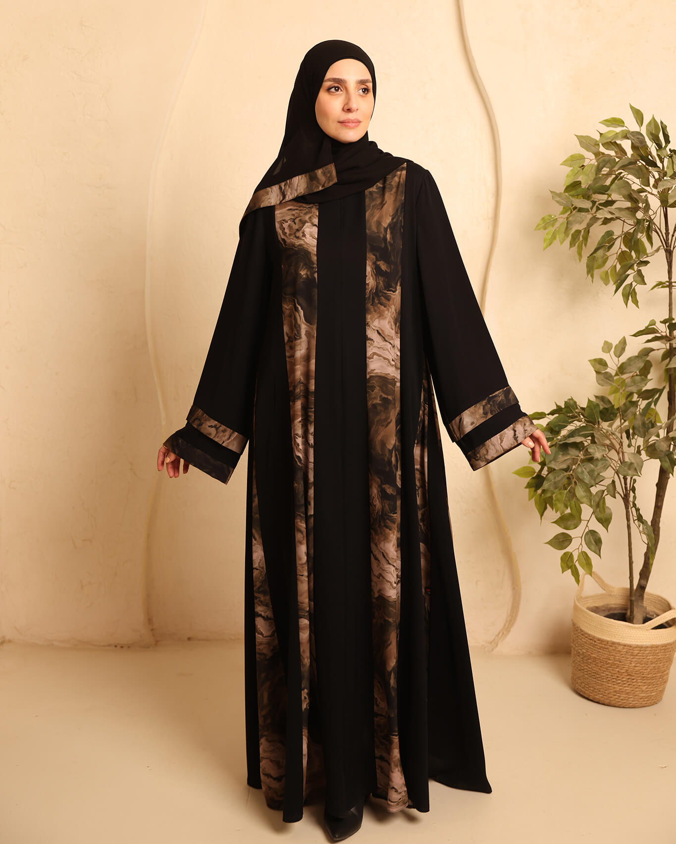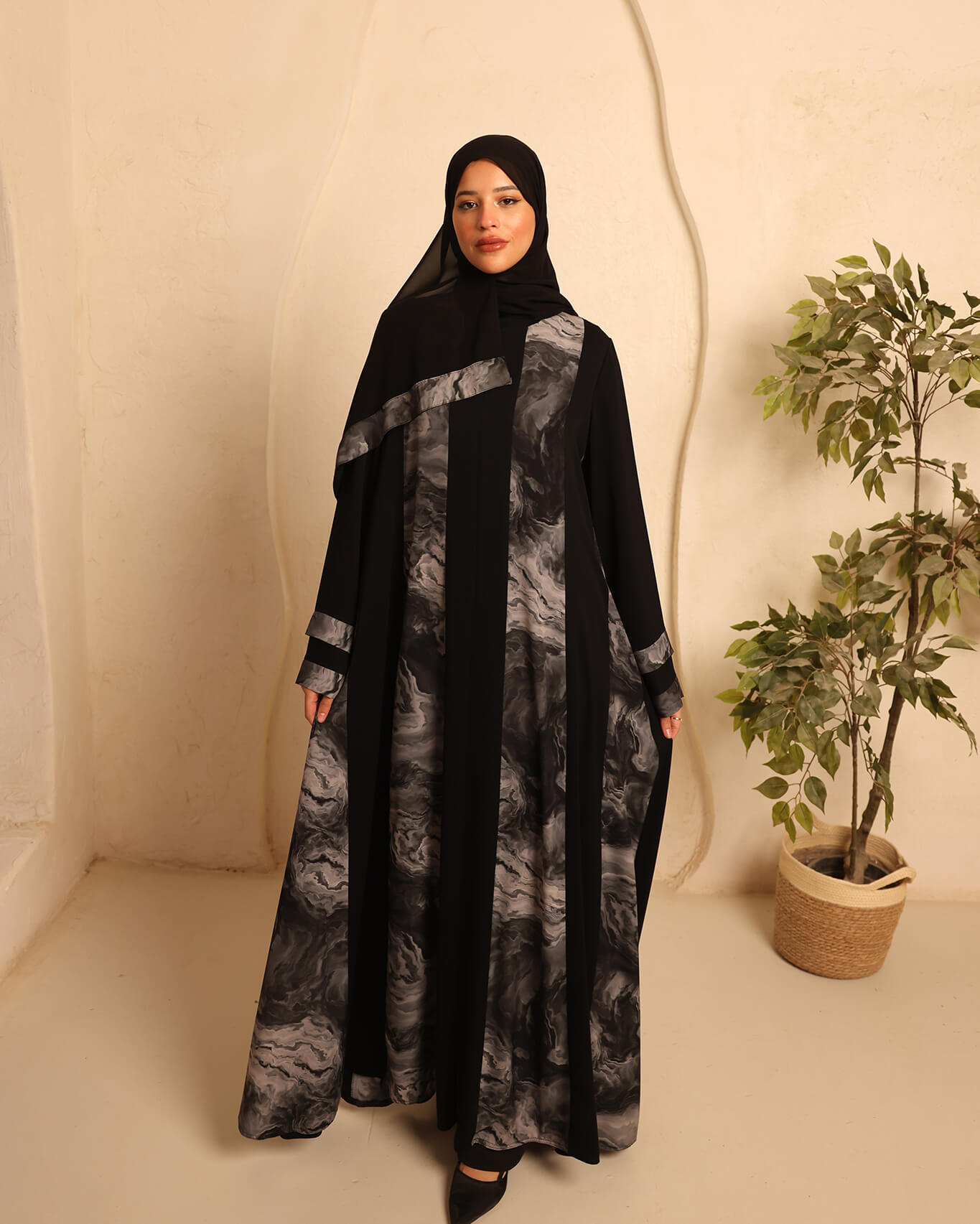 عباية الأسود بشرائح ديجيتال من فيفر هي الخيار المثالي لمن ترغب في الجمع بين الكلاسيكية واللمسة العصرية في قطعة واحدة عملية وأنيقة تناسب مختلف الأوقات.